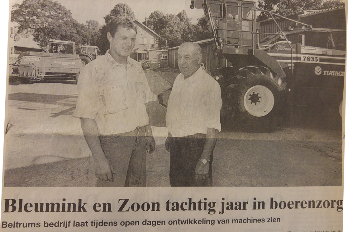 Loonbedrijf Bleumink bestaat 80 jaar. Hier staan Theo en Jan Bleumink afgebeeld (tweede en derde generatie).
